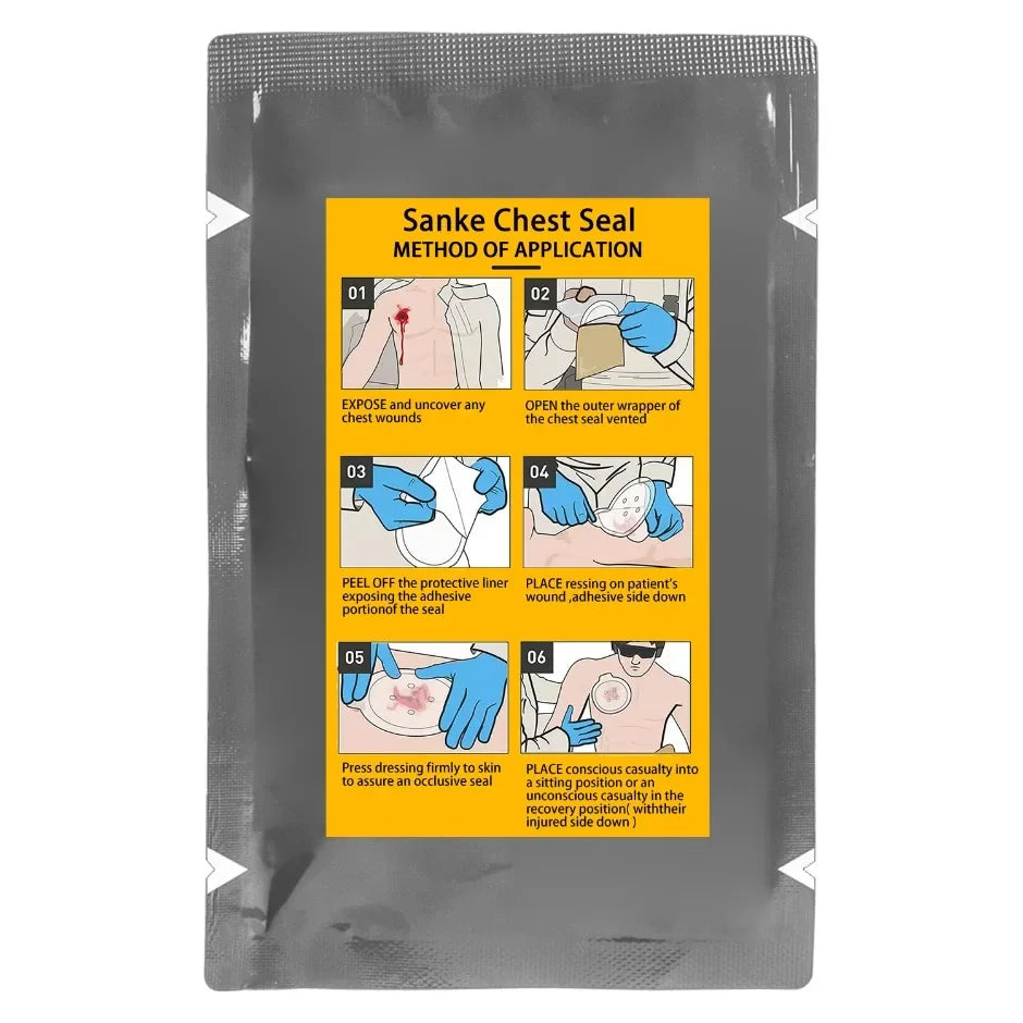 Sanke Rescue emergency kit contains the most popular survival accessories:Tourniquet,chest ,compression gauze , Survival Bracelet,Whistle Emergency Blanket, comprehensive first aid kit, etc.